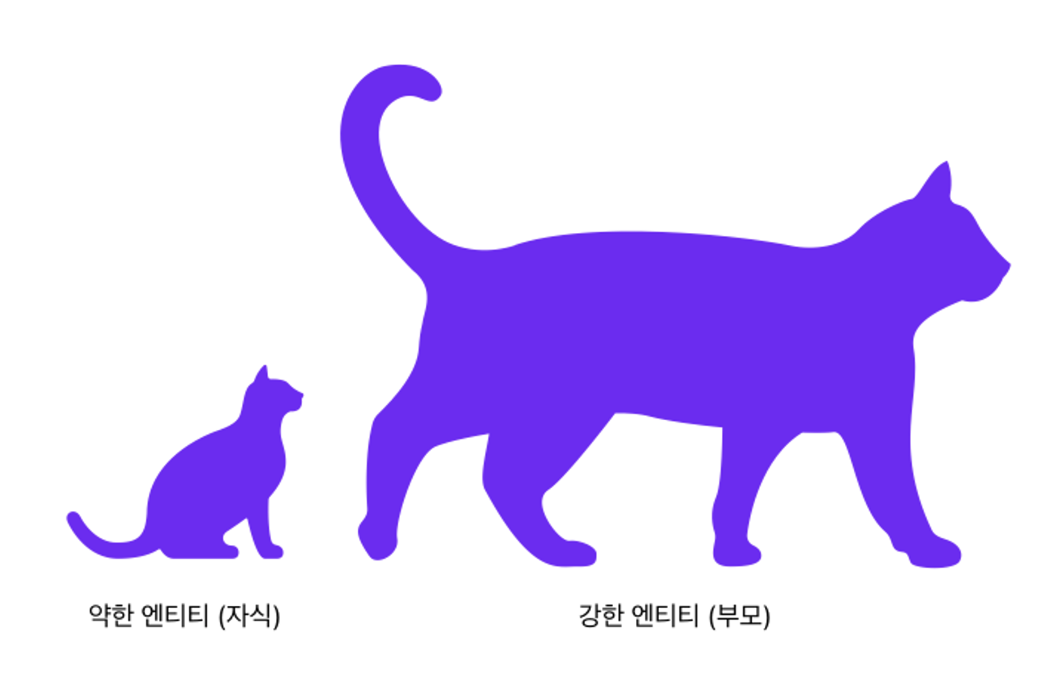 엔티티는 약한 엔티티와 강한 엔티티라는 개념이 있다.