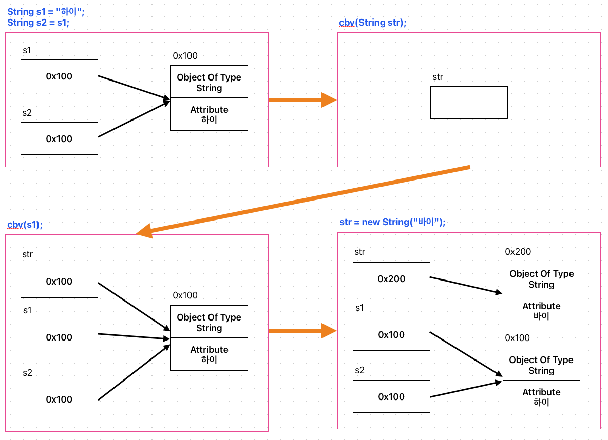 위에 사진만 보면 어? Call By Reference 아니야? 주소값 전달하잖아! 라고 생각할 수 있다.