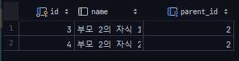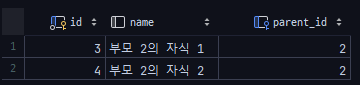 부모 2는 자식 리스트에서 자식 1, 2를 지운 것을 확인 할 수 있다.