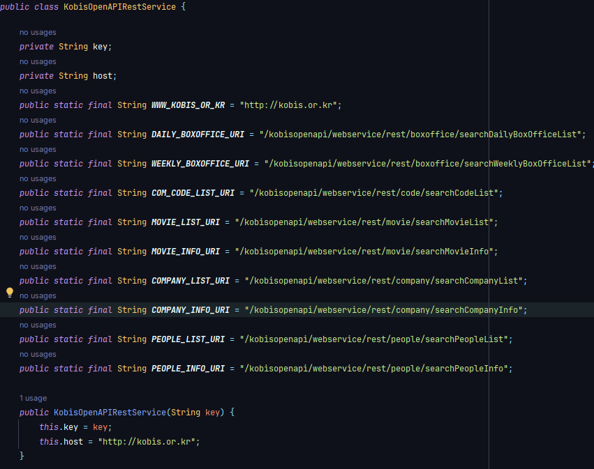 KobisOpenAPIRestService service = new KobisOpenAPIRestService(key);