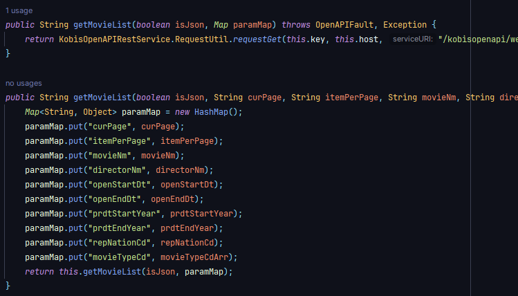 안에서 보면 getMovieList를 오버로딩하고 있다.