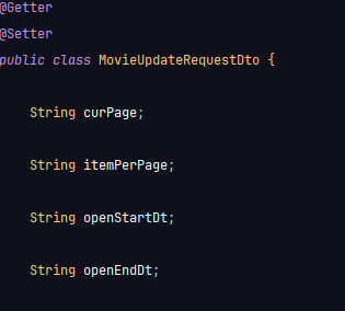 public void updateMovies(String curPage, String itemPerPage, String openStartDt,